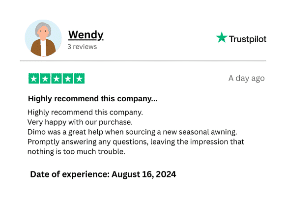 Since we have a 100% commitment to fully recycling your old awning and reusing packaging, you can rest assured that what is good for you is also good for the environment.