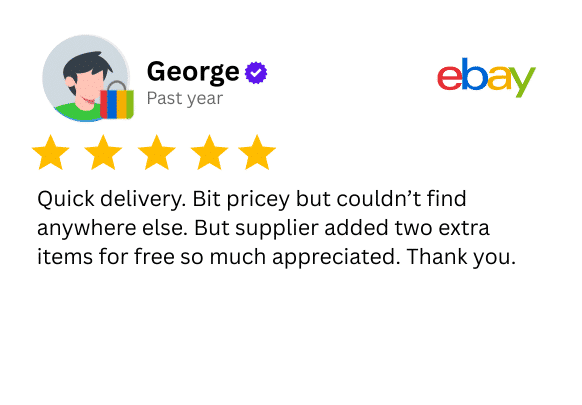 Orders placed before 1pm are normally dispatched on the same working day, excluding weekends and bank holidays.