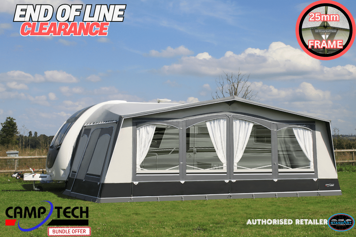 Save over £89.00 on a brand new 2023 model Camptech Cayman size 19 (1100-1125cm) in our End of Line Clearance SALE. Claim your Free SL500 Tech Line Secure Storm Straps Kit with Free Delivery Included.