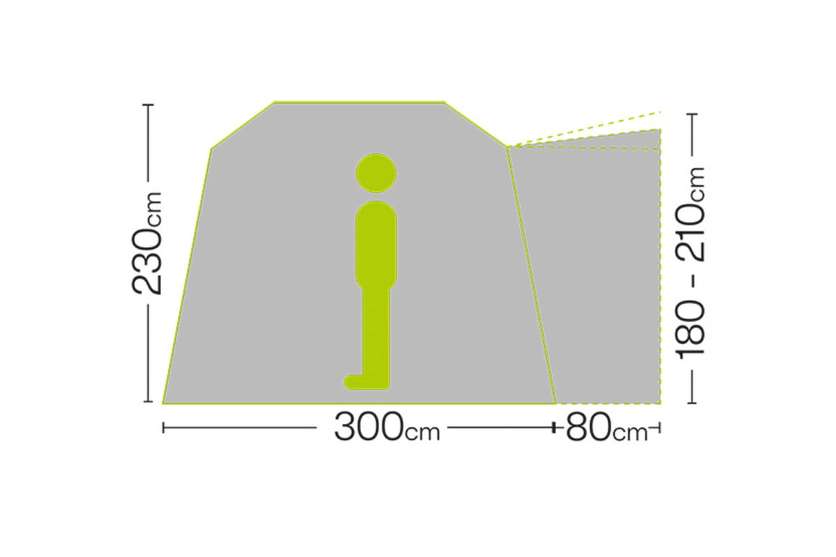 • Inflatable air awning, ideal for campervans 180–210 cm high.