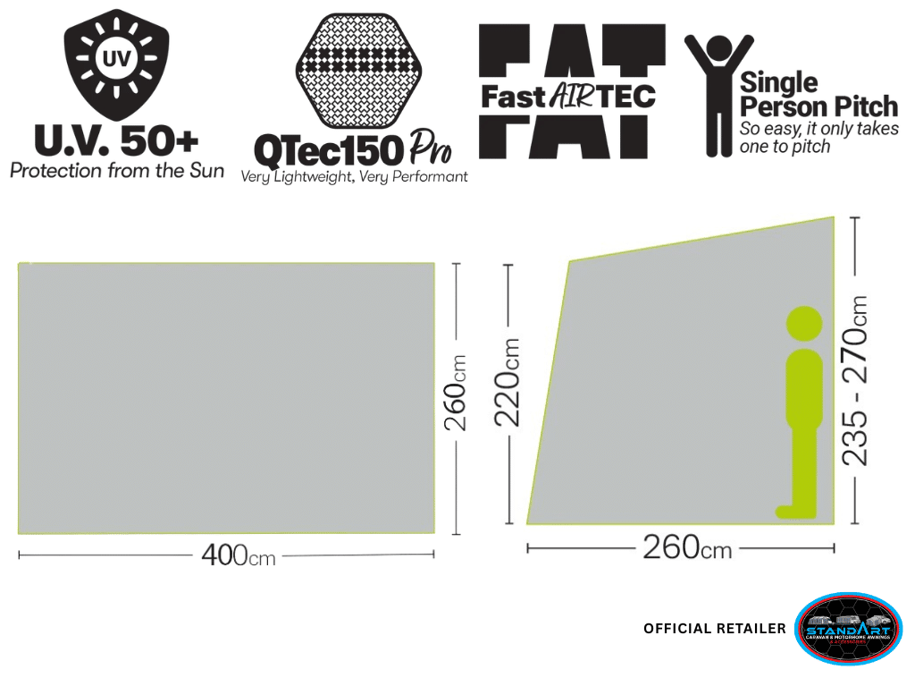 Designed for Caravans & Motorhomes 235–255cm | Fast Inflation Air Frame | UPF 50+ UV Protection | 4,000 mm Waterproof Rating