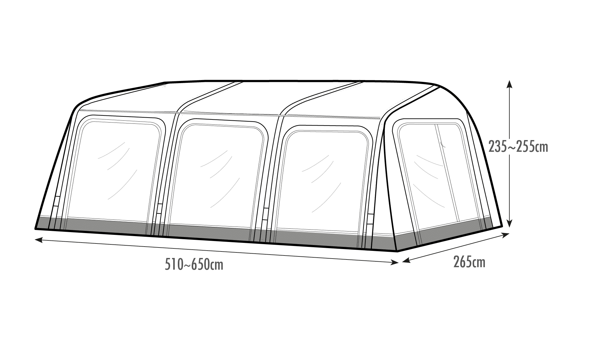 Thanks to the AAS (Advanced Air System) with a single inflation point, pitching is quick and effortless, taking only 15-20 minutes to fully set up. With class leading front headroom of 185cm ensuring you can use the full 265cm width, making it a comfortable and practical choice for short trips as well as extended vacations. Equally the Awning is fast and easy to pack up with multiple deflation points, ready to fits into the holdall bag provided.